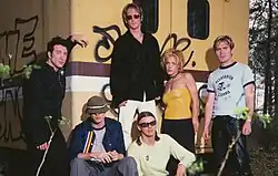 ![]() New Radicals touring group c. 1998. Left to right: Jim McGorman, Gregg Alexander, Stuart Johnson, Sasha Krivtsov, Danielle Brisebois, and Brad Fernquist. | |