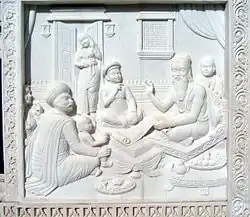 Pillar carving depicting Swaminarayan and Paramhansas -