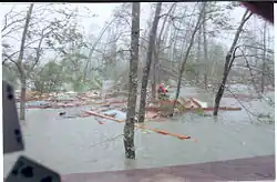 A unique bond between two very disparate groups was formed as a result of the hurricane. Two groups, the Bastrop Christian Outreach Center (BCOC) and attendees of the counter-culture Rainbow Gathering, arrived around the same time in Waveland.[11] The BCOC efforts were led by Reverend Colonel Pete and Fay Jones who were among some of the first responders.[17] Each group represented very different philosophies and had little common faith, each was able to put aside their differences and focus entirely on their humanitarian efforts.[11] The cooperation between the two groups was described as "unlikely",[7] a "bunch of hippies and evangelical Christians"[18] and the "unlikeliest of bedfellows".[7]