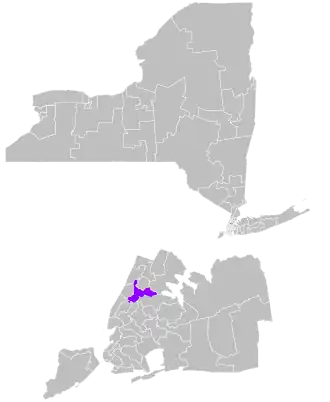 The district overlaps New York's 10th, 12th, 13th, and 15th congressional districts, and with the 67th, 68th, 69th, 73rd, 76th, 77th, 84th, and 86th districts of the New York State Assembly.[5]