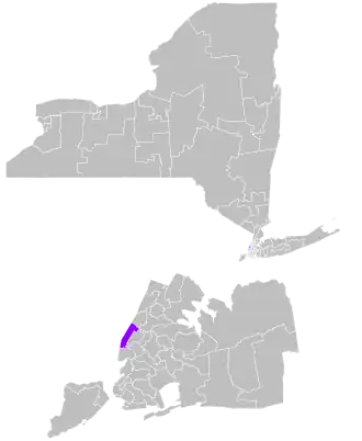 The district overlaps with New York's 10th and 12th congressional districts, the 66th, 67th, 69th and 75th districts of the New York State Assembly, and the 3rd, 6th and 7th districts of the New York City Council.[5]