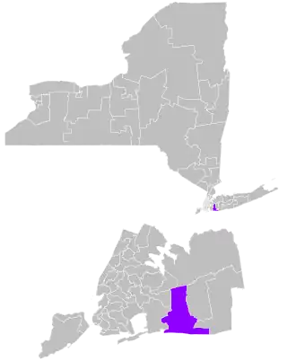 The district overlaps New York's 4th and 5th congressional districts, and with the 18th, 19th, 20th, 21st, and 22nd districts of the New York State Assembly.[5]