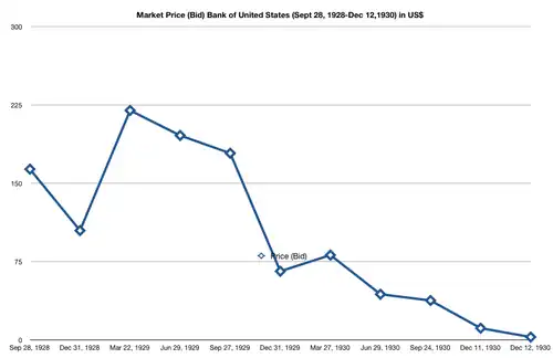 Bid price for the Bank of United States. Quarter ends 1928–1930 + Dec. 11 and 12, 1930