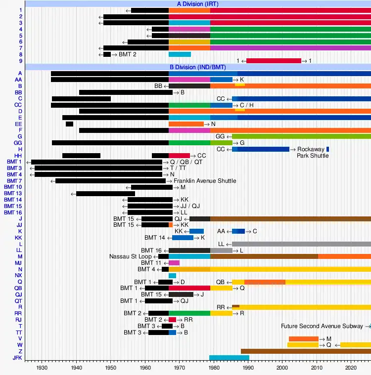 - ^ Luo, Michael (December 25, 2003). "Revised Subway Map (and Alphabet) Awaits Riders in '04". The New York Times. ISSN 0362-4331. Retrieved December 2, 2019.