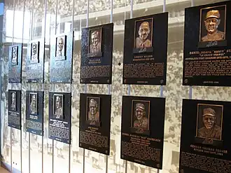 The New York Mets Hall of Fame was created in order to recognize the careers of former New York Mets players, managers, broadcasters and executives. There are presently 30 members.[1][2] Originally located in the Diamond Club at Shea Stadium, the inductees were honored with plaques in the Mets Hall of Fame and Museum at Citi Field, which opened in April 2010.[3][4] In Citi Field's first season, 2009, the space was part of the Mets Team Store. Following the 2023 season, the Hall of Fame was moved to the Field Level of the Jackie Robinson Rotunda while the museum was closed to expand the Team Store. The museum reopened in a smaller space near the Bullpen Gate in 2024.[5]
