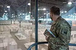 The commander of the New York Guard state defense force visits with volunteers serving with the New York National Guard's incident command post - New York State Housing Finance Agency (HFA)
