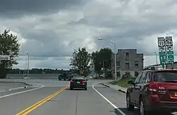 New York State Route 9B (NY 9B) is a state highway located within Clinton County, New York, in the United States. The route serves as a connector between its parent route, U.S. Route 9 (US 9), in the town of Champlain and US 11 in the village of Rouses Point. While US 9 bypasses Rouses Point to the west, NY 9B veers east to serve the village and the shoreline of Lake Champlain. NY 9B is the northernmost section of the Lakes to Locks Passage, an All-American Road. Modern NY 9B was the original alignment of US 9 through the town of Champlain. US 9 was moved onto its present alignment west of Rouses Point in the mid-1940s, at which time its former routing to Rouses Point became NY 9B.