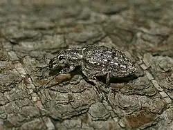 The New York weevil (Ithycerus noveboracensis) is a species of primitive weevil; large for weevils (12–18 mm), it is covered with fine bristles and has a regular pattern of light and dark spots. It occurs in the eastern United States and southern Canada.