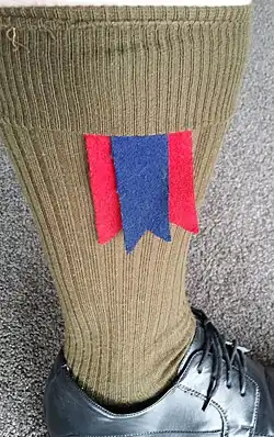 - Garter Tabs – Also known as "woodchucks" Garter Tabs were worn with uniform shorts with the practical use of holding up knee high socks. Garter tabs also served the additional use of identifying the unit that the wearer belonged to. RNZAOC Garter Tabs were blue and Red.