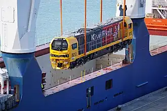 The first two locomotives, DM8012 and DM8029, were unloaded from the Eemslift Nadine at the Port of Lyttelton near Christchurch on 19 October 2024.[17] They were described as the prototypes and will be commissioned at the KiwiRail Middleton Depot and undergo six months of in-service trials.[18][19]