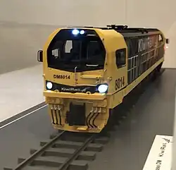 The New Zealand DM class[nb 1] of 66[1][4] diesel-electric locomotives are currently under manufacture for New Zealand rail operator KiwiRail by Stadler Rail in Spain. The locomotives are expected to be introduced between 2025 and 2026.[2] The first two locomotives arrived in October 2024 to commence testing and commissioning, with the first unit entering service on 21 July 2025. [5]