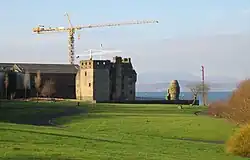 Newark Castle is a well-preserved castle sited on the south shore of the estuary of the River Clyde in Port Glasgow, Inverclyde, Scotland, where the firth gradually narrows from the Firth of Clyde and navigation upriver is made difficult by shifting sandbanks. For centuries this location was used to offload seagoing ships, and led to the growth of Port Glasgow close to the castle on either side and to the south. When dredging techniques made the Clyde navigable as far as Glasgow the port became a shipbuilding centre, and the castle was surrounded by shipyards. Ferguson Shipbuilders, the last shipyard on the lower Clyde, stands close to the west of the castle, but the shipyards to the east were removed around the 1980s and new landscaped areas formed to the east of Newark Castle, opening up scenic views of the castle and across the Clyde from a new bypass road.