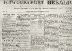 The Newburyport Herald (1797–1915) was a newspaper published in Newburyport, Massachusetts in the 19th century. It began in 1797 with the merger of two previous newspapers, William Barrett's Political Gazette and Angier March's Impartial Herald.[1] Employees included abolitionist William Lloyd Garrison and James Akin.[2]