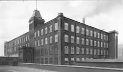 In the post-war economic boom of 1919–20, investors did not have the time to build new mills and so were prepared to pay vastly inflated sums for shares in existing companies. Many mills were refloated at valuations of up to £500,000 (£29,020,000 as of 2023[19]), or five times what they had cost to build before the war,[20] resulting in the town being nicknamed "The Golden City" as the scramble for shares intensified.[20] Because of this highly profitable share dealing, it was reported in the national press that Shaw and Crompton had more millionaires per capita than any other town in the world.[12][21][22] Elm Mill was extended.[2] The number of cotton mills in the township peaked at 36 in 1920.[22]