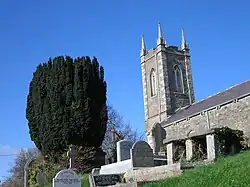 The church is located a few hundred feet from the castle and some parts of the building date from the 12th Century.[3] This church is named as a prebend as early as 1227. In 1467 it was assigned by Archbishop Michael Tregury to the Archdeacon of Glendalough. The present church was built between 1783 and 1788, with its tower being constructed in 1821.[3] In 1872, the Archdeacon of Glendalough ceased to have a place in the Chapter, as such, and the separate prebend of Newcastle was revived. The church, which is owned by the Church of Ireland (Anglicans), was also used as the local Catholic church for services in 2000 when it was agreed to share it until the catholic oratory was rebuilt. The local primary school, St Francis's, is located beside the church. There is a ruin of a Catholic church about 2 miles (3.2 km) from the village with a graveyard.