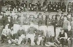 Due to being confused with a side from Stanley, County Durham, the club's name was changed to Newcastle East End Football Club in October 1882.[1] The first game played under the new name was against Hamsterley Rangers, taking place on 7 October 1882, it ended 1–0 to East End. Early players for the club included the likes of William Findlay, Alex White and Tom Watson.[2] Originally East End played their games at Stanley Street in Byker but moved a short distance to Chillingham Road, on the border between Byker and Heaton during 1884, near to a railway network.[1] The club became founding members of the Northern League.[3]