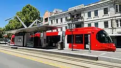 ![]() CAF Urbos 100 vehicles at Queens Wharf stop | ||||||||||||||||||||||||||||||||||||||||||||||||||||||||||||||||||||||||||||||||||||||||||