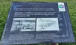 On the morning of Friday 13 January, 16 fishing boats from Newcastle and Annalong set out to Herring fishing grounds. The conditions were unusually calm, as a result they travelled further from the shore than normal. At approximately midday, the wind suddenly changed from a southerly to north westerly direction, increasing in strength and bringing snowy squalls. A few boats attempted to return to shore but most were overcome immediately.[1][2] The disaster was witnessed from shore and a number of people attempted a rescue, twelve of whom died. In total 73 people died and 14 boats sank, including one that had gone to the rescue. George Thompson from Glasdrumman, located between Newcastle and Annalong, saved eight people when he hauled their boat ashore. He was awarded an RNLI Silver Medal which is now located in the Down County Museum. [1][3]