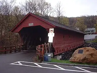 Newfield Bridge is a wooden covered bridge over the Cayuga Inlet west branch. It is in Newfield, Tompkins County, New York. It is one of 29 covered bridges in New York State[2] and the oldest covered bridge in New York that continues to carry motor vehicle traffic.
