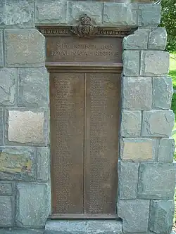 When World War I began Walter Edward Davidson, the governor of Newfoundland, committed to increasing the Reserve to 1000 men, and to do so relaxed some of the age and health requirements for joining. In less than a year that number was exceeded. Unlike the Royal Newfoundland Regiment, which served as an intact unit, the men of the Naval Reserve were dispersed throughout the Royal Navy.[3] A list of those who served with the Naval Reserve between 1914 and 1918 is available on-line.[4] The members of the Naval Reserve are represented by a sailor holding a spyglass on the west wing of the Newfoundland National War Memorial in St. John's. Members of the Reserve who died during the war are honoured at the Beaumont-Hamel Newfoundland Memorial in France. [5] Sir Winston Churchill remarked that the Newfoundlanders were "the best small boat men in the world".[3]