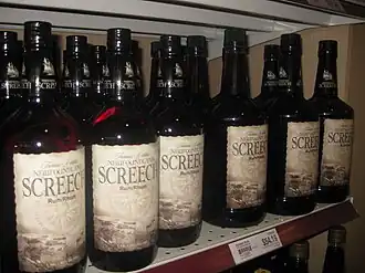 Newfoundland Screech is a rum sold in Newfoundland with 40% alcohol by volume. The term screech is a colloquial term that has been used to describe almost any cheap, high alcohol spirit, including moonshine. The term is used in the brand name for this mid-priced rum to associate the brand with this tradition.