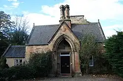 The original lodge house was smaller than the one seen today and was also designed by Cousin, however it was extended in 1883, by Kinnear & Peddie .[3]