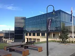 Other local government heritage listings across the Newington campuses include the former Stanmore Methodist Church, also designed by Rowe in 1874 and now part of the Duckmanton Drama Centre[21] and the Victorian Italianate-style parsonage that is now the Deputy Headmaster's residence;[22] and at Abbotsford, the late 20th Century Robert Glasson Boatshed that replaced the 1920s original.[23] A gymnasium was built in 1890, and a swimming pool was opened in 1894 however both have been replaced by a multi-court gymnasium and indoor swimming pool.