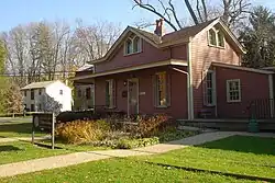 (The image shown is of the main office, and not the Trimble House.) This house was built into the hill above the mill and the miller's house in 1742,[23] also with four rooms. It was expanded by 1765 to accommodate William Trimble's growing family. It has nine fireplaces, a 53 foot (16 m) deep well and much of the original flooring, woodwork, doors, and hardware. The Newlin Foundation bought the house in 1998 and it is used as a private residence.[4]