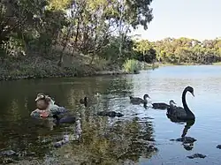 Newport Lakes Park is a bushland oasis created from a former bluestone quarry.[8] The park is 33 hectares in size and has been extensively revegetated using native plants, with over 200 species of plants and 85 species of birds recorded here. The park has a picnic area, toilets, drinking taps and free electric barbecues.[9] Dogs may be exercised in the Pavey's Park and Picnic Area, the north west area of the park and in the Arboretum.[10]