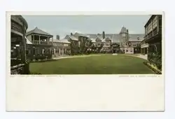 The Newport Casino is an athletic complex and recreation center located at 180–200 Bellevue Avenue, Newport, Rhode Island in the Bellevue Avenue/Casino Historic District. Built in 1879–1881 by New York Herald publisher James Gordon Bennett, Jr., it was designed in the Shingle style by the newly formed firm of McKim, Mead & White. The Newport Casino was the firm's first major commission and helped to establish the firm's national reputation. Built as a social club, it included courts for both lawn tennis and court tennis, facilities for other games, such as squash and lawn bowling, club rooms for reading, socializing, card-playing, and billiards, shops, and a convertible theater and ballroom. It became a center of Newport's social life during the Gilded Age through the 1920s.[3][4]