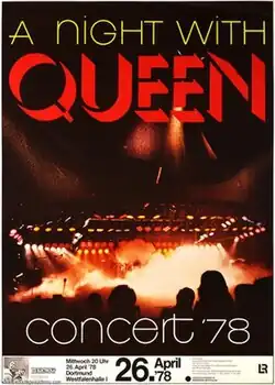 The News of the World Tour was the fifth headlining concert tour by the British rock band Queen, supporting their successful 1977 album News of the World. The tour spanned from 11 November 1977 to 13 May 1978 over three tour legs: North America, Europe, and the United Kingdom. Rehearsals for the tour took place at Shepperton Studios in October 1977.[1]
