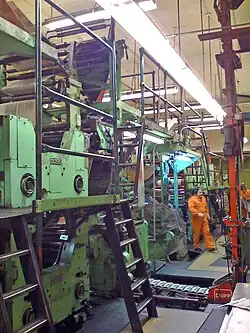 Snedden also embarked on a series of upgrades to the News-Miner's printing equipment. In 1953, rotary printing was introduced to Fairbanks after Snedden purchased a used rotary press from The Sacramento Union.[12]: 59 To house the press, Snedden built a two-story building adjacent to the Lathrop Building. The Lathrop Building still contained most of the News-Miner's offices and typesetting equipment, but it was not large enough to contain the new press without extensive renovations, thus requiring a new building. Shortly after the new press was introduced, the News-Miner produced its first full-color newspaper.[12]: 59 The new equipment also allowed for larger print jobs, and Snedden introduced an annual Progress Edition that was intended to be distributed outside Alaska in order to attract business and industry to the state.[12]: 59 In 1954, the News-Miner obtained a dedicated teletype to the Associated Press, avoiding the need for contracts for telephone and telegraph service to a correspondent in Seattle who would relay AP material to the News-Miner.[15]