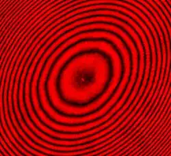 This interference results in a pattern of bright and dark lines or bands called "interference fringes" being observed on the surface. These are similar to contour lines on maps, revealing differences in the thickness of the air gap. The gap between the surfaces is constant along a fringe. The path length difference between two adjacent bright or dark fringes is one wavelength λ of the light, so the difference in the gap between the surfaces is one-half wavelength. Since the wavelength of light is so small, this technique can measure very small departures from flatness. For example, the wavelength of red light is about 700 nm, so using red light the difference in height between two fringes is half that, or 350 nm, about 1⁄100 the diameter of a human hair. Since the gap between the glasses increases radially from the center, the interference fringes form concentric rings. For glass surfaces that are not axially symmetric, the fringes will not be rings but will have other shapes.