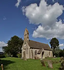 Architectural evidence suggests that the Church of England parish church of Saint Michael and All Angels was a Norman church built in the middle of the 12th century.[3] The earliest documentary evidence of the church's existence is slightly later, when Ralph Purcel granted the church to the Augustinian Bicester Priory in 1200.[3] Of this original church little survives except a 12th-century Norman doorway and a 13th-century piscina.[3][4]
