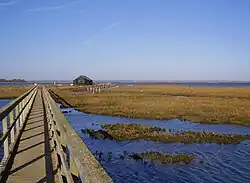 Newtown is located 5 miles (8 km) west of the town of Newport on the large natural harbour on the island's north-western coast.[1] It is now mostly a national nature reserve owned and managed by the National Trust.