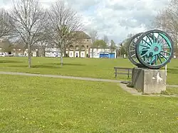 The first properties to be built the following year were 72 cottages for workers, including engineers, fitters, smiths, carpenters, painters and other labourers. Further expansion led to a population rise from 3,000 to 5,000 by 1852. In 1861, a school was built, with space for 500 children. The Locomotive pub was constructed in 1866, later being renamed to the Alfred Arms.[1] A carriage shop was constructed between 1858 and 1871; it is now Grade II listed.[3] A mechanics institute and school was constructed on land alongside the Ashford to Hastings line. A clock tower was constructed at the entrance to the works at Newtown in 1897, which was replaced by a free-standing design in 1907.[4] After the works expanded in 1912, a further 126 homes were constructed, making a total of 272.[2]