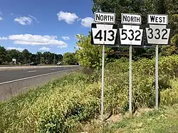 Three state highways traverse the township: Pennsylvania Route 332, Pennsylvania Route 413 and Pennsylvania Route 532. PA 332 follows a generally east–west alignment, PA 413 follows a generally north–south alignment, and PA 532 follows a southwest–northeast alignment. All three originally passed directly through the middle of the township, with PA 332 and PA 413 also crossing the borough of Newtown, but all now follow the Newtown Bypass to avoid central parts of the township and Newtown Borough.