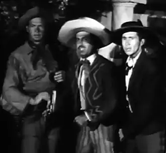 ![]() Morrow (right) with Bill Williams and Don Diamond in The Adventures of Kit Carson, 1951 | |