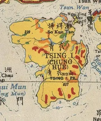 Nga Ying Chau, or Cap Island, was an island off the northeast shore of Tsing Yi Island of Hong Kong, separated by a small harbour, Mun Tsai Tong, with Tsuen Wan at its northeast, just across the Rambler Channel. When the small harbour was reclaimed for the development of a new town, the island became part of Tsing Yi Island. The island was once home to the CRC Oil Storage Depot, which later relocated to the other side of Tsing Yi Island owing to the previous site's proximity to the residential area. The former island is now a small hill on the northeast point of Tsing Yi Island, and Villa Esplanada, a private housing estate, stands on the hill.