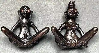 The Ngang (งั่ง), also known as Phra E-Hang (พระอีหง่าง) in the Isan and Lao dialects, is a Khmer-style amulet venerated in northeastern Thailand and southern Laos. It is believed to bring metta mahaniyom (loving-kindness and popularity), success in business, personal charm, and even invulnerability to its wearer.[1] Today, Ngang amulets are widely collected, ranging in value from a few baht to hundreds of thousands.[2]