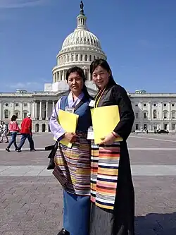 Ngawang Sangdrol (born in Lhasa, Tibet, in 1977) is a former political prisoner, imprisoned at the age of 13 by the Government of the People's Republic of China, for peacefully demonstrating against the Chinese occupation of Tibet in 1992. She was at first held for eight months without trial, before being sentenced to a three-year prison term. Her sentence was extended repeatedly for continued protest in prison, which included recording a tape of freedom songs with 13 other nuns from Drapchi Prison that was smuggled out of Tibet.[4]
