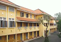In 1915, the construction of the school was completed and the first pupils were admitted. The Governor-General of French Indochina at that time was Ernest Roume and he, together with Governor Courbeil, cut the inauguration tape and declared the beginning of a new school year. 42 schoolgirls were enrolled in the first year. Uniforms at that time were violet áo dài, symbolising the purity of Vietnamese women. For this reason the school had also been called Áo Tím (Violet Dress) all-girls school. All pupils lived in Sài Gòn and nearby areas and only later were hostels provided for schoolgirls from further afield. The school was organised on several levels: Infants (Enfantin), Superior (Supérieur), Conference of Primary Education (CEP). Students had to pass the exam for the Certificate of Fundamental Education after graduating from senior classes. In 1918, because of the increase in student numbers, a new building parallel to the previous one was constructed. The new building was multifunctional with the lower floor being used as a hostel for students. At the rear was the infirmary, the wash-room and the kitchen. That was also the place where domestic science and embroidery were taught.