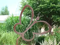The conservatory was opened in December 1996 with a gift shop, 200-seat theater/auditorium room, and a climate-controlled greenhouse.[4][5][6] The conservatory has over 2,000 tropical butterflies from over 45 different species.[4] The conservatory glass dome is 1,022 square metres (11,000 sq ft) in size with 180 metres (590 ft) of paths inside the greenhouse portion, which has a wide variety of foliage.[1][2][4] The conservatory can accommodate up to 300 visitors per hour.[4] Since captive butterflies usually have a life span of 2–4 weeks, the conservatory imports up to 3,000 butterflies per month from world butterfly farms in Costa Rica, El Salvador, the Philippines, and Australia.[4][6][7] Special netting along the inside of the glass dome keeps the butterflies from getting stuck to it and from dying from hypothermia.[4] Butterfly food plants at the conservatory such as Lantana, Cuphea, Zinnia, Ixora, Liatris, and Pentas are replaced every 2–3 weeks because caterpillars have large appetites.[4]