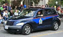Niagara Regional Police Service marked patrol vehicles have historically been white. In the late 1980s to the early 1990s, they were distinguished with royal blue hoods and a single blue stripe on the sides of the vehicle. In the mid-1990s, the service adopted the crest used today, switching to blue and green stripes on the sides of patrol vehicles, and abandoning the traditional blue hoods. This striping change was relatively short-lived, with the service soon adopting red and blue striping more commonly seen on police vehicles in Ontario. In 2013, the Niagara Regional Police Service commenced a rebranding of marked patrol vehicles, adopting a black and white colour scheme, with silver and red graphics, which is being phased in as vehicles are replaced through attrition.
