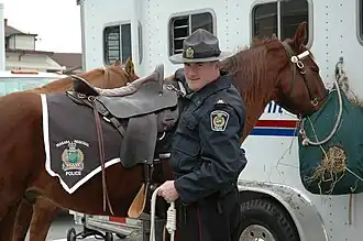 Members of the mounted unit are part of the force's colour guard. There are three horses in the unit, with the other three horses retired. Two of the three horses are owned by the Niagara Regional Police Service. On November 25, 2010, the Niagara Regional Police Services Mounted Unit was disbanded for budgetary reasons. The annual budget of $30,000.00 used to care for the horses was redistributed elsewhere.
