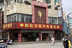 Nian Guangjiu was born in a Manchu family[2] and grew up in poverty. Starting at age 9, he helped his parents sell fruit to earn a living.[3][4] In 1963, he was convicted of "speculation and profiteering" (投机倒把罪) for selling fish; he was convicted to one year in prison and served five months.[3][4] In 1966, he was imprisoned for more than 20 days as one of the "cow demons and snake spirits" vilified in the Cultural Revolution.[3] After he was released, he continued to engage in private enterprise, selling guazi (seeds eaten as snacks).[4] Because melon seeds were rationed, it was illegal to sell them, and Nian Guangjiu repeatedly got in trouble with authorities for this activity.[4] But his business was successful. His roasted seeds had a distinctive flavor, and he was known for his generous behavior when selling them.[4] This led to people calling him a fool, and he accepted the term with pride, adopting the phrase "Fool's Melon Seeds" (Chinese: 傻子瓜子; pinyin: Shǎzi Guāzi) as his trademark.[3][4] The goods continued to sell well, and by 1976 he had saved up 1 million RMB in profit.[3]