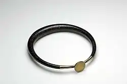 The Nias people used a variety of materials for the creation of their weaponry: leather, cord or woven fibres, precious metal, iron, and brass. The Nias used spears, swords and blades as their weapon. The Nias spear (toto'a doho in the south, toho in the north) was mainly used for hunting; the shaft is made of dark hardwood of nibung palm wrapped with rattan. Another type of spear is the burusa, with a triangle-shaped head.[25] The Nias sword (gari) is a combat weapon; both the sword and its sheath have a simple undecorated form.[26] The most well-known of the Nias weapons is the balato or tolögu, a steel sword with a protective amulet believed to possess magical power. The balato has a hilt made of brass. The sheath of the balato contains a spherical bundle of rattan (ragö balatu) which performed as a protective amulet. This protective amulet is usually attached to a variety of objects e.g. animal fangs which are formed so that it looks like the jaw of the mythical lasara.[27] The balato is only reserved for the highest nobles as a kind of proof of the authority and the social rank of its owner.[26]