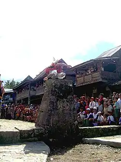 Stone monuments were central to the Owasa festival, a kind of feast to raise the rank of a person. Dedicating stone monuments publicly is considered one of the several requirements that must be done by a person to prove that he has fulfilled the right to claim a higher rank and to receive honorary titles.[21]