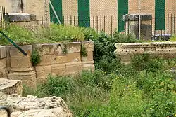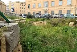The remains of the chapel, which include Nibbia's sarcophagus, are now found in a cordoned area in the car park of Evans Building.[1][8] The ruins were given a facelift by the Archaeological Services Cooperative and the Grupp Arkeologiku Malti (Maltese Archeology Group) in 2002,[9] but they have since fallen into a state of disrepair.[3] These remains were scheduled as a Class B national monument by the Malta Environment and Planning Authority in 2008.[1]
