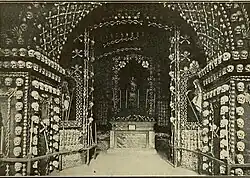 In 1852, chaplain of the hospital Rev. Sacco decided to decorate the crypt with human remains from the cemetery. It therefore became known as the Chapel of Bones, and by the early 20th century it had become an attraction for both the Maltese and tourists, being featured on a number of postcards.[4][6] Over the years, local tradition held that the bones in the crypt did not belong to Sacra Infermeria patients, but to soldiers who had died during the Great Siege of Malta in 1565.[7]